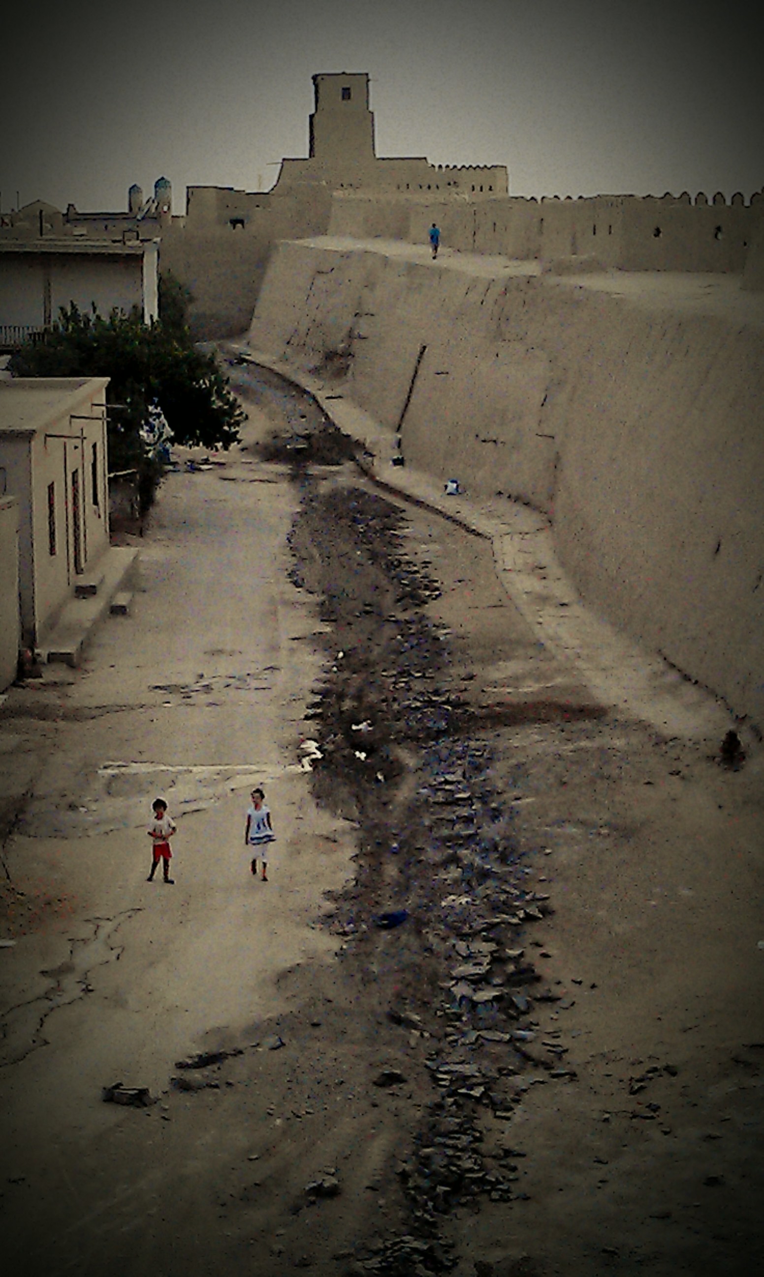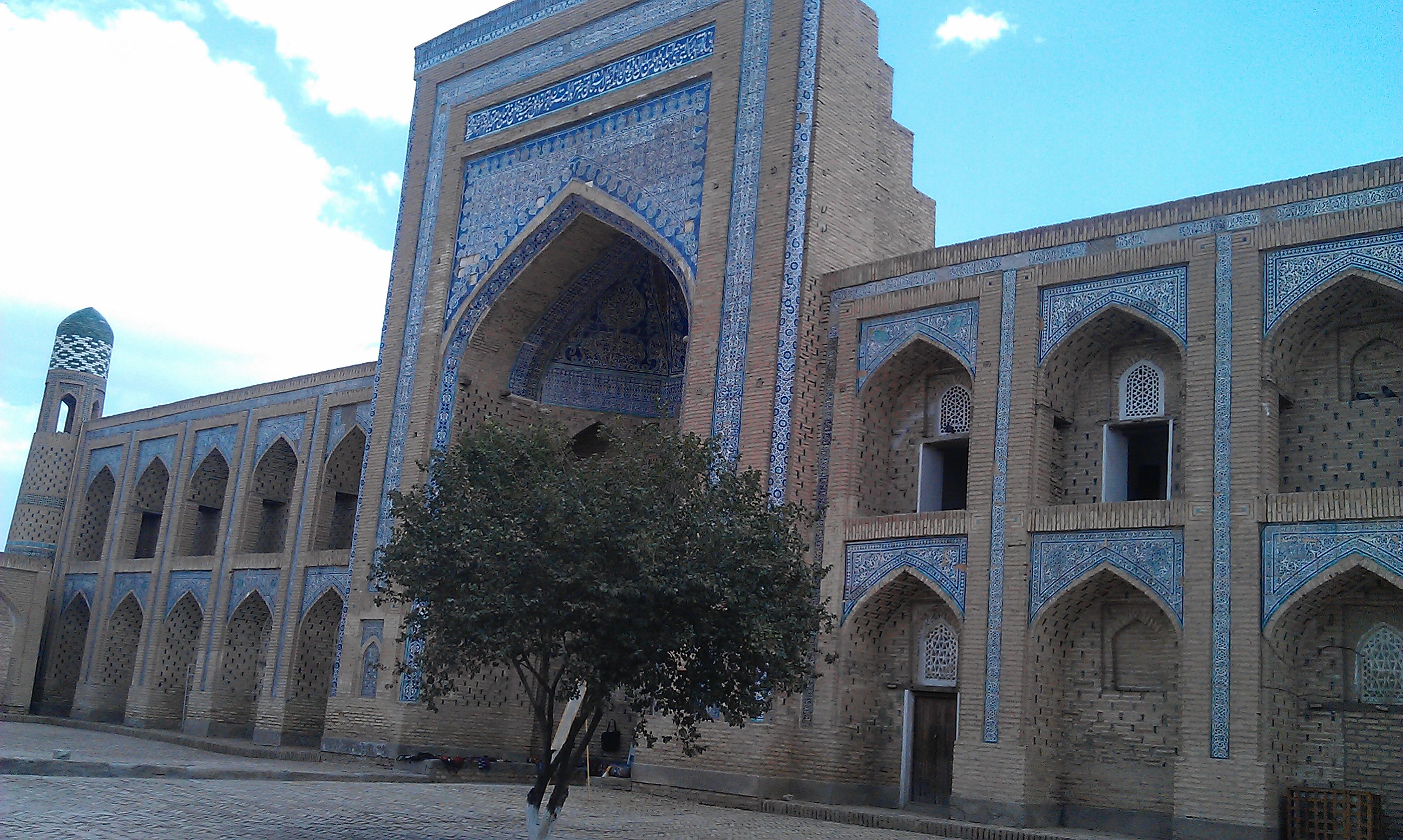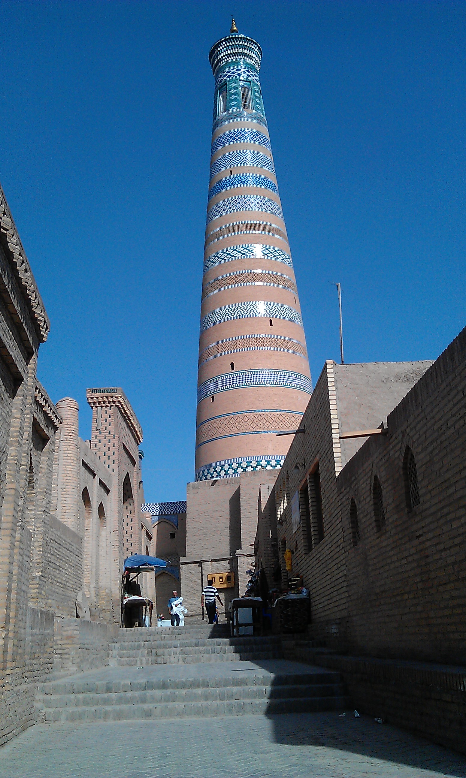 From Nukus I made the 2 day hop south to the ancient silk road city of Khiva. On the way into Nukus the desert had dramatically turned into green farmland in the space of just one hill and the landscape did the same in reverse on the way out. I battled a headwind again along this stretch before turning off to join the mighty Amudarya river that irrigates much of central Asia. The change in landscape was dramatic again as I found myself riding through swarms of huge dragon flies alongside fields of cotton and other crops, past villages of mud houses and groups of kids swimming in the coffee brown waters of the irrigation channels and ditches. It was another world. I was invited to stay with a family in their house for the night and fed the national staple of plov, washed down with beer, vodka and green tea.