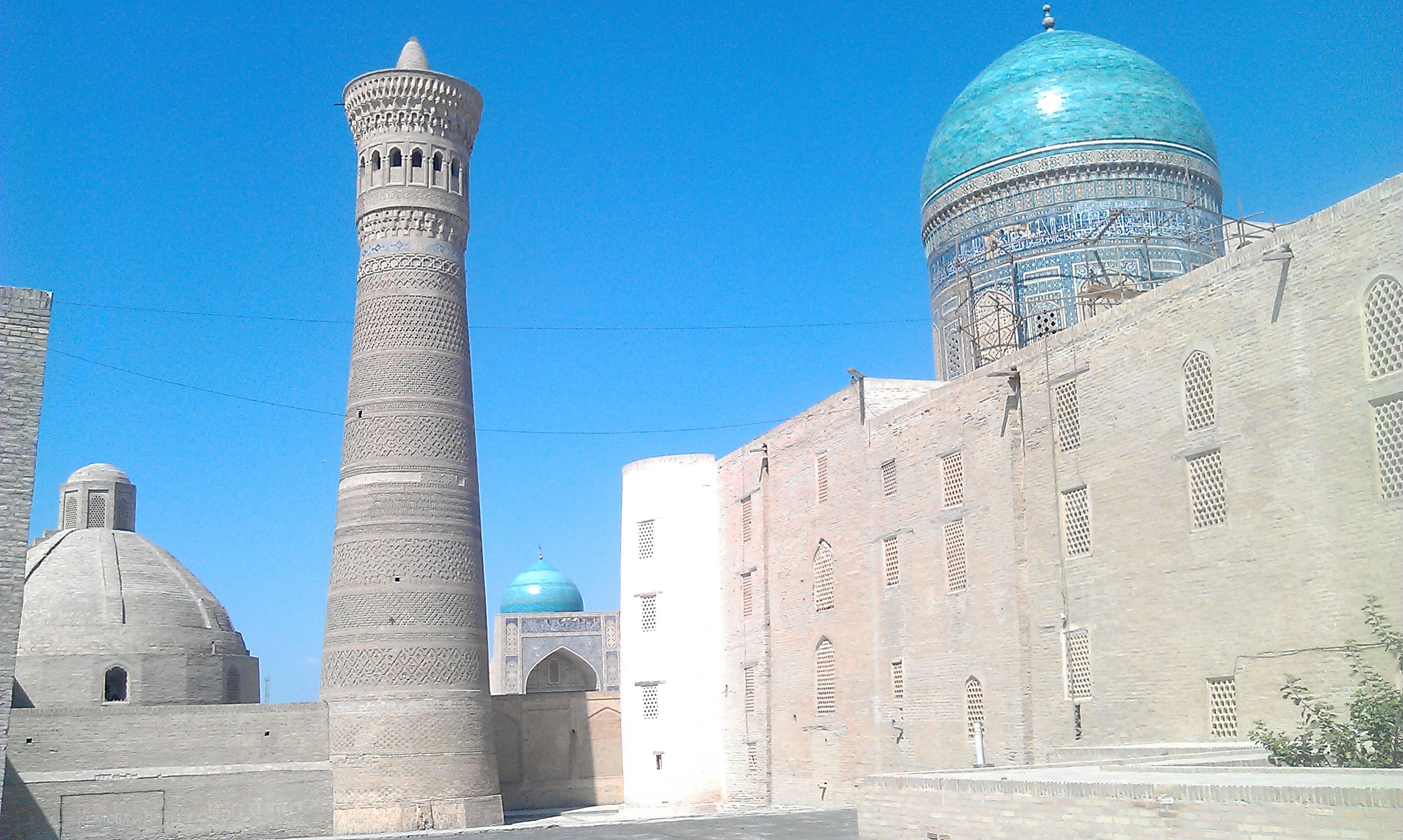 The following morning I rolled the last of the 500kms stretch out of the desert and into Bukhara. Again, I was in a restored ancient Silk Road city, with a few more tourists and a little less charm than Khiva, but still a magical place. On my first evening wandering around the winding back streets I was looking for a place to eat away from the tourist restaurants and passed a table covered in food. Some local people ushered me in through the gateway into the traditional Uzbek family home court-yard. I thought I was being invited into a family restaurant, but was ushered into a brilliantly colourful room full of carpets, beautifully dressed women and endless plates of food. All the men were outside and after a little confusion it was explained this was a family party to celebrate a new arrival in the family. Without a second thought they had invited me in to join in the celebrations which included a room FULL of food and a bowl of vodka being placed in front of me by the rosy-cheeked grand-mother. Despite the language barrier and the temperature in the room it was a beautiful evening of sign language, laughter, photos and incredible spontaneous hospitality by the family.