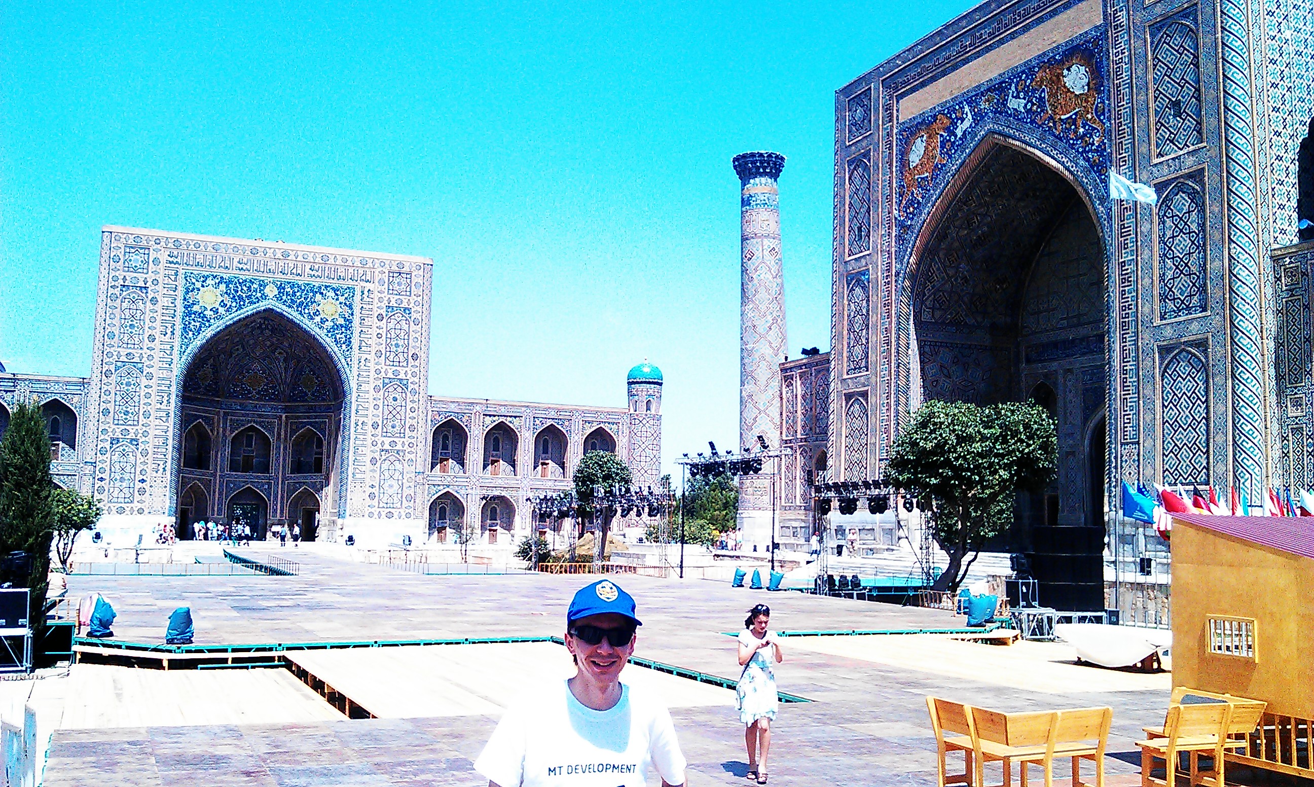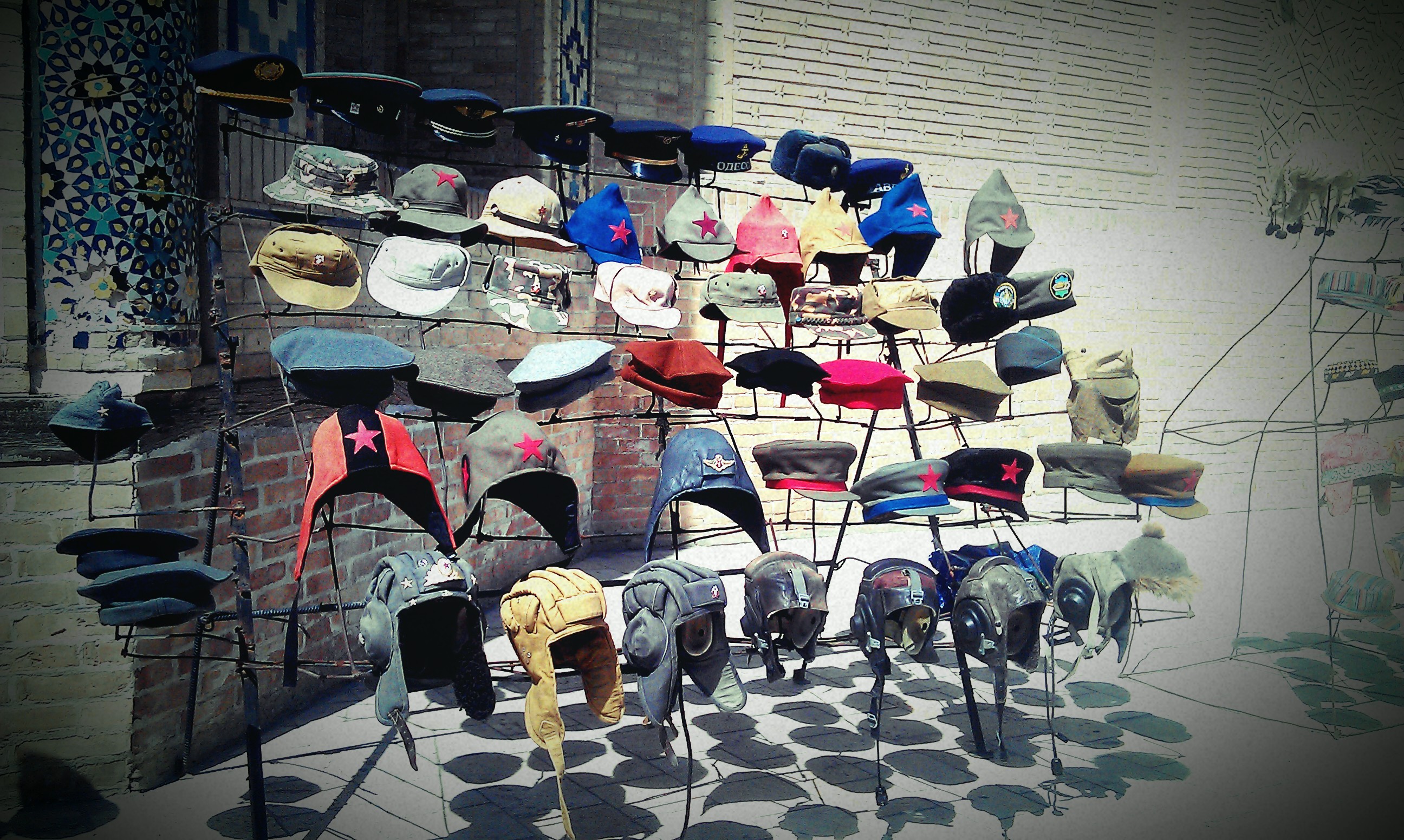 The road just before Samarkand started to get busier with traffic and after well over a 1000km of flat desert and riverside roads, a series of rolling hills was a bit of a shock to the system. We weaved our way through the traffic and into a hostel (for those all important registration slips) before spending a lazy day and evening with the Uzbek national drinks of chai and vodka. I also had to pay a visit to the national bank to try to withdraw some $ from my bank ( I had not realised that there are almost no ATM’s in Uzbekistan and had been surviving on generous loans from other cyclists). The trip to the bank was an eye opener – mainly at the sight of someone making a large deposit. Due to the value of the som a lot of notes don’t add up to much and there was a guy at the cash desk just surrounded by cardboard boxes of money. You could have been mistaken for thinking he was moving house, not paying in his weekly salary. I had to wait 30mins to get my dollars and all this time he just seemed to be passing wad after wad of cash through the window. I took my pitiful looking dollar bills to the bazaar and found a man with a black bag to change them into my own wads!
