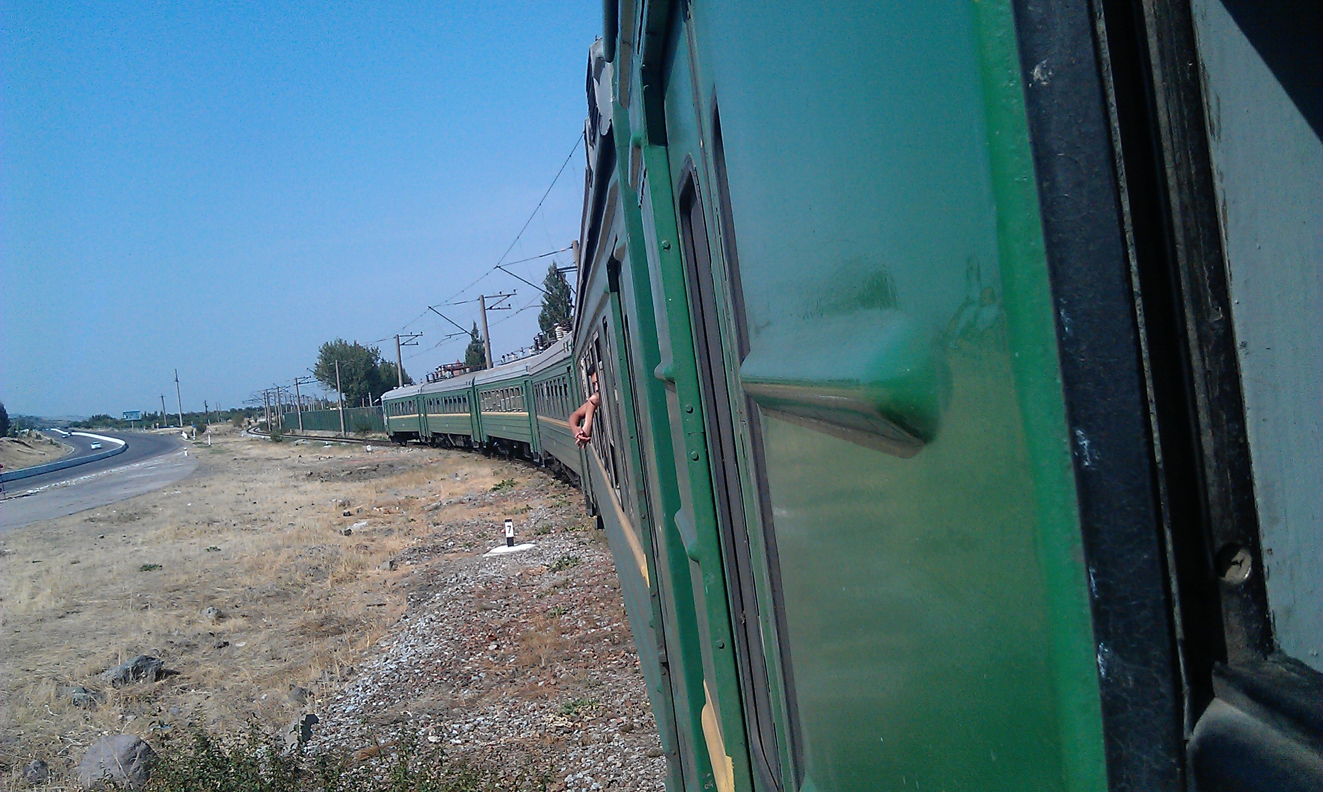 I had decided to take the train to Tashkent to get my visa for Tajikistan and save myself 3 days of riding on my Uzbek visa (in case there was a delay at the Tajik embassy) It didn’t save me any stress though. Passport check to get into the station, then everything off the bike to go through x-ray, then everything down 3 flights of stairs to the other platform, back up 3 flights of stairs and then an argument to be allowed to bring the bike on the train, the insistence of an extra 10,000 som “to help” find room for the bike. I made a real fuss, refused to pay the bribe and eventually Carra (squashed into a doorway) and I were on the train. Ironically (considering my reason for going to Tashkent) the film being showed in 1st class (the only ticket left/ I were allowed to buy) was about Tajik terrorists hijacking a bus!