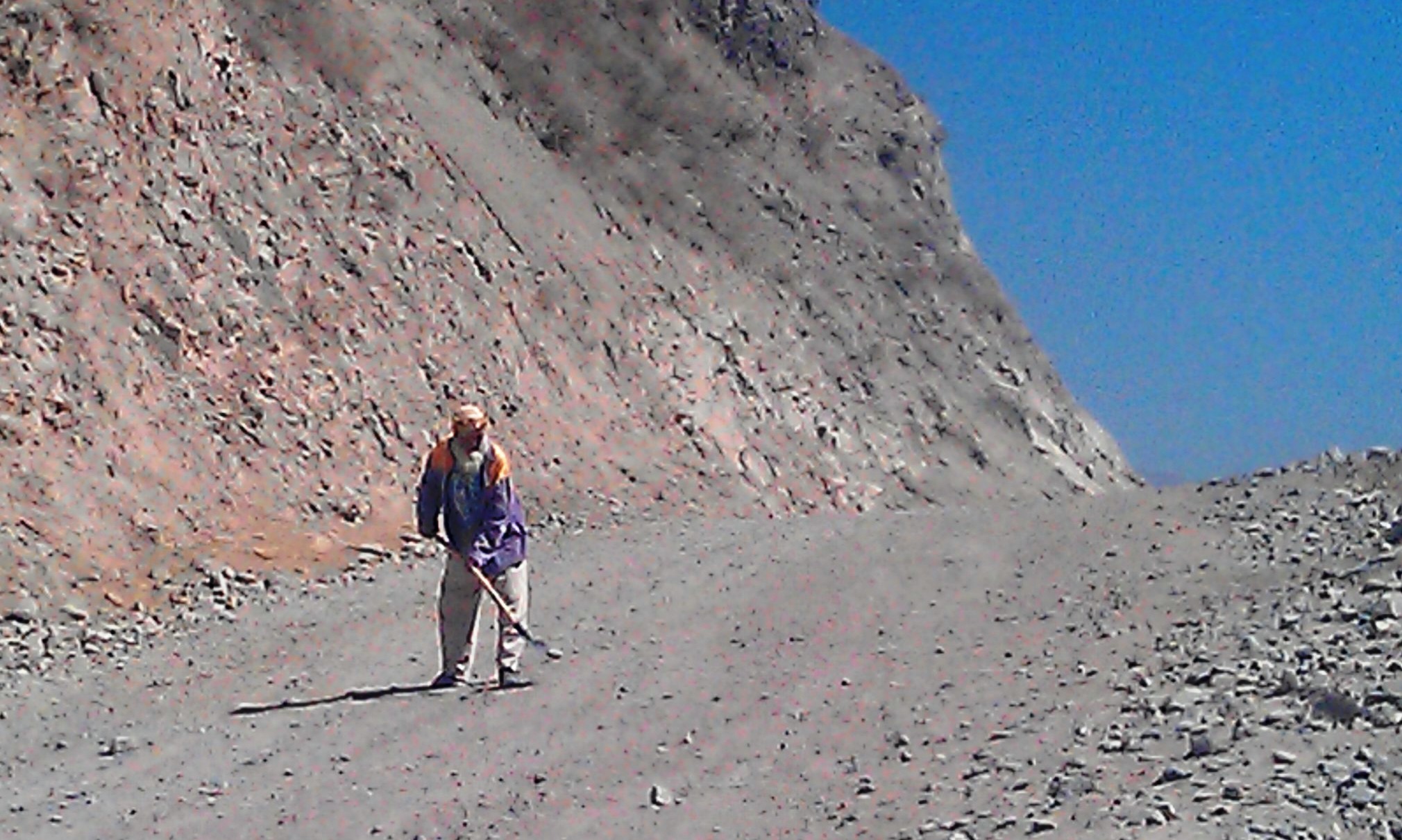 The next day the puncture saga seemed over, and minuscule in comparison to the task of the road worker we passed. He was clearing large rocks from the road with a shovel! Just outside another village further on, we watched from our tents in the morning as 2 boys came past us collecting the dry cow pats scattered around. They would use them for fuel for fires to cook and stay warm with in the winter. As we gained altitude there was less and less vegetation. A few more days of stunning river landscapes and idyllic wild camping and we fought our way up to the first pass, a little over 3500m.