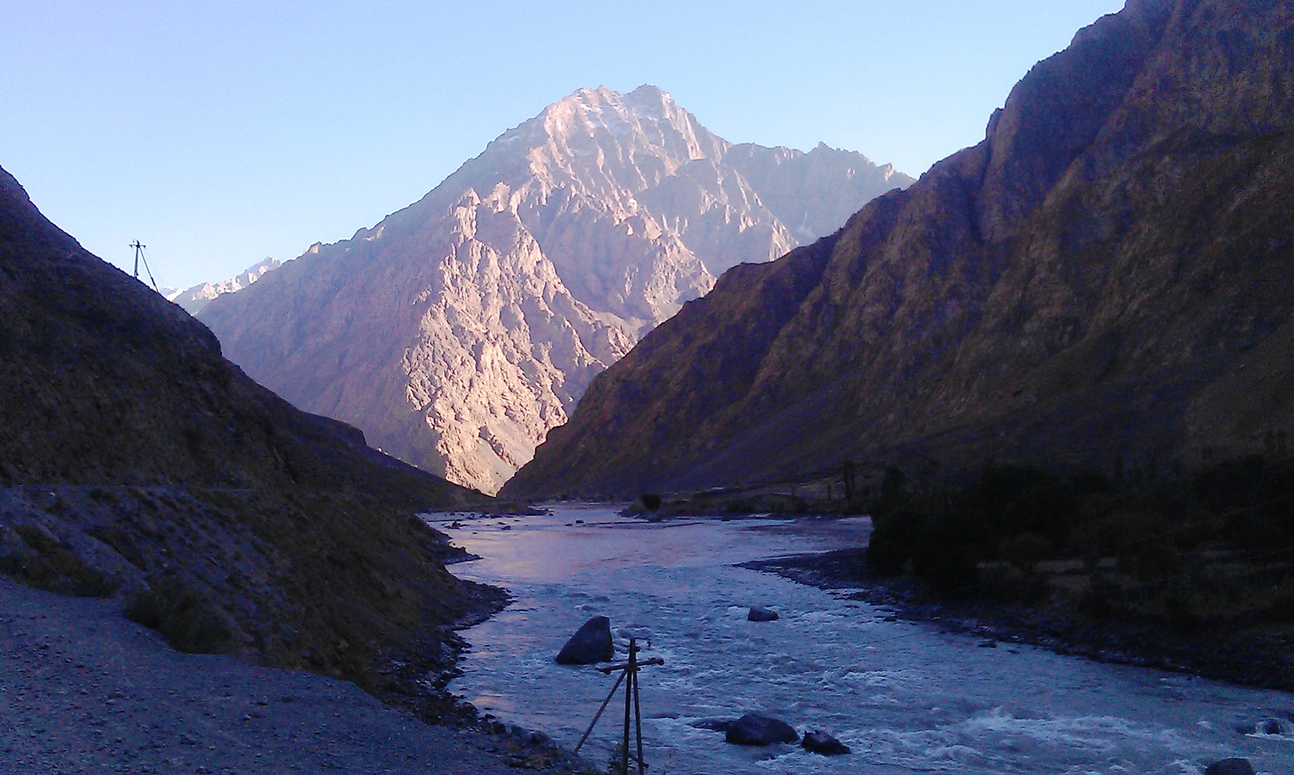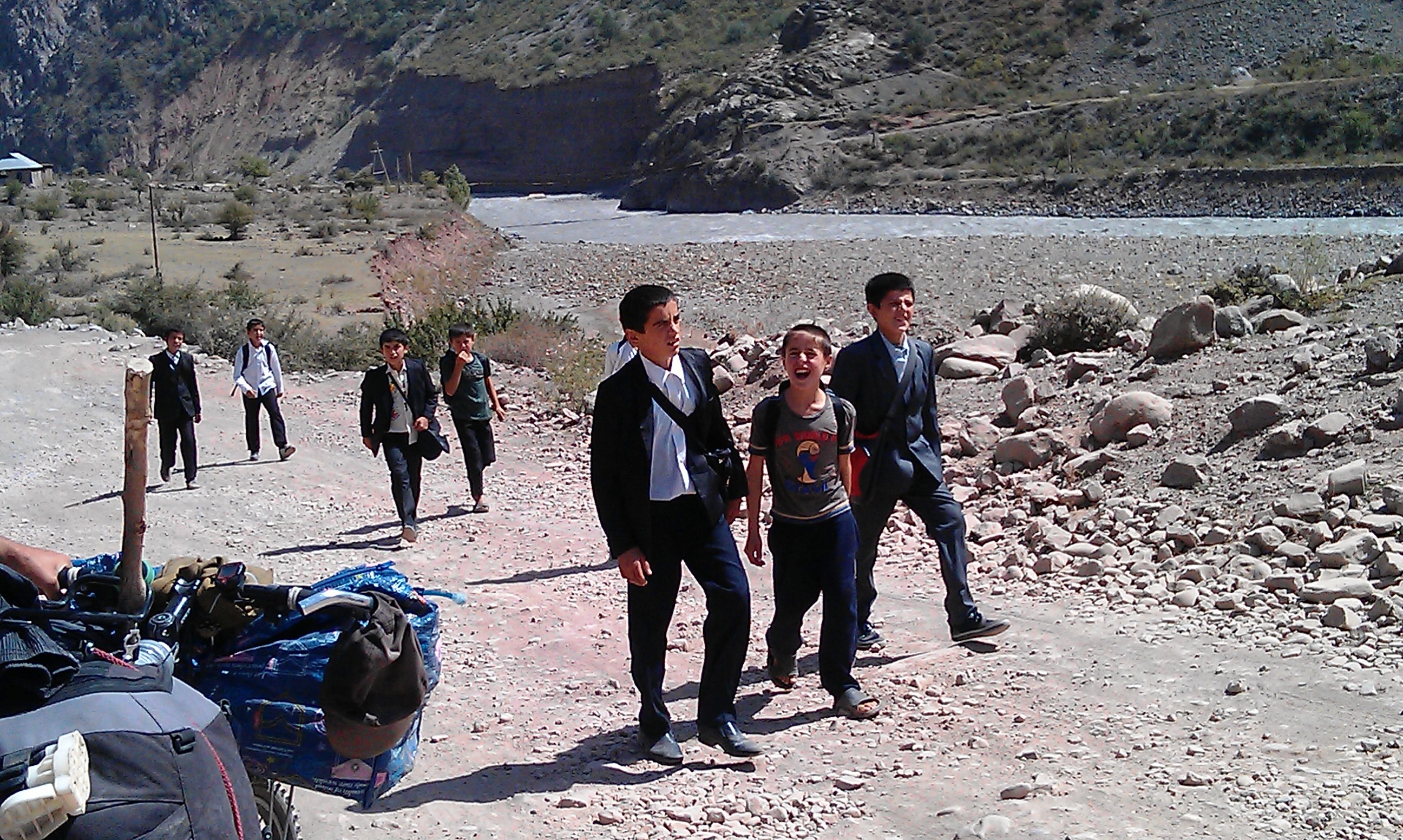 The road down from the pass joined the Panc river and gave us our first sight of Afghanistan. This felt like a momentous point for me, a true feeling of being a long way from home. On the other side of the river that we were now following was a country about which all my previous knowledge and understanding was based on news reports about its war. A war that my brother had twice served as a British soldier in, a war that I somehow felt some guilt and culpability for as a UK citizen. And now I was looking over a river at this country, waving to people in the villages on the opposite banks, and once – riding away from a guy who decided to fire stones at us with impressive accuracy from his slingshot. On our side the road was poor, but passable and with an occasional flow of trucks and share taxi jeeps using it. On the Afghan side it was no more than a track carved into the steep sides of the river bank and used only by donkeys, motorbikes and a couple of aid vehicles. It definitely felt like the outside looking in.