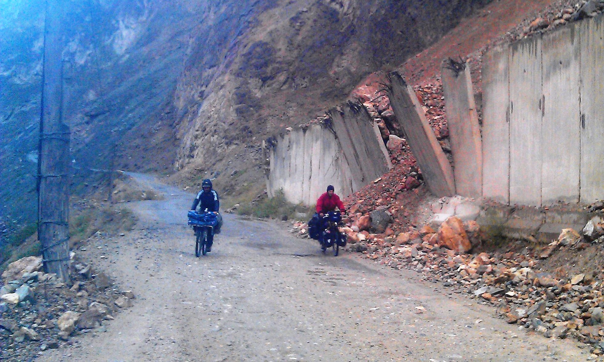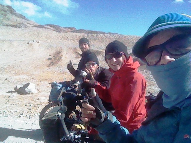 On the descent from the pass it was Xav’s turn to suffer mechanical strife. With a crack in his rear rim the brakes were constantly causing his wheel to skid on the same section of the tyre and eventually it ripped a hole through it. Luckily he was carrying a spare tyre and somehow he managed the next 6 weeks with hardly any rear braking and his skinny emergency tyre- legend!
