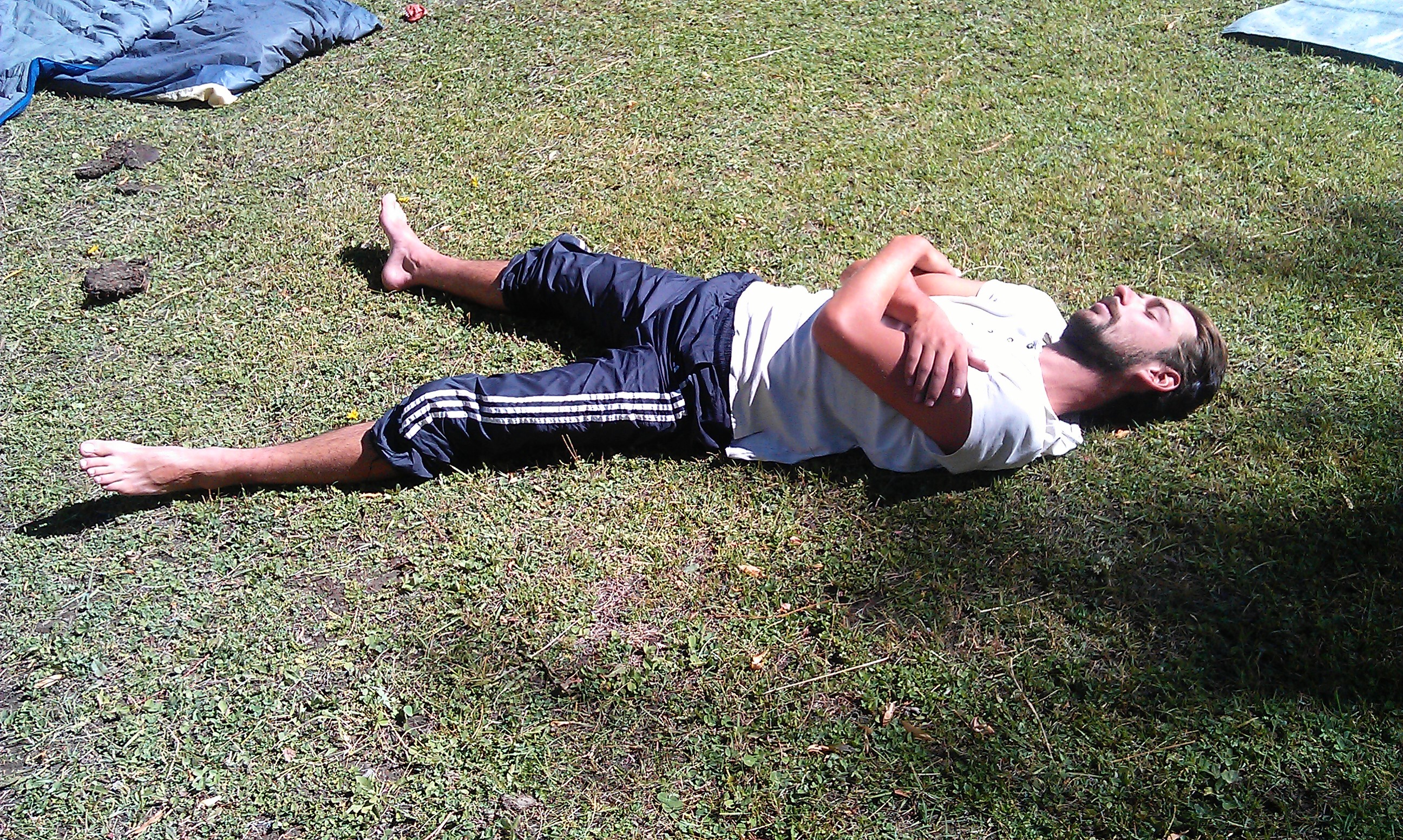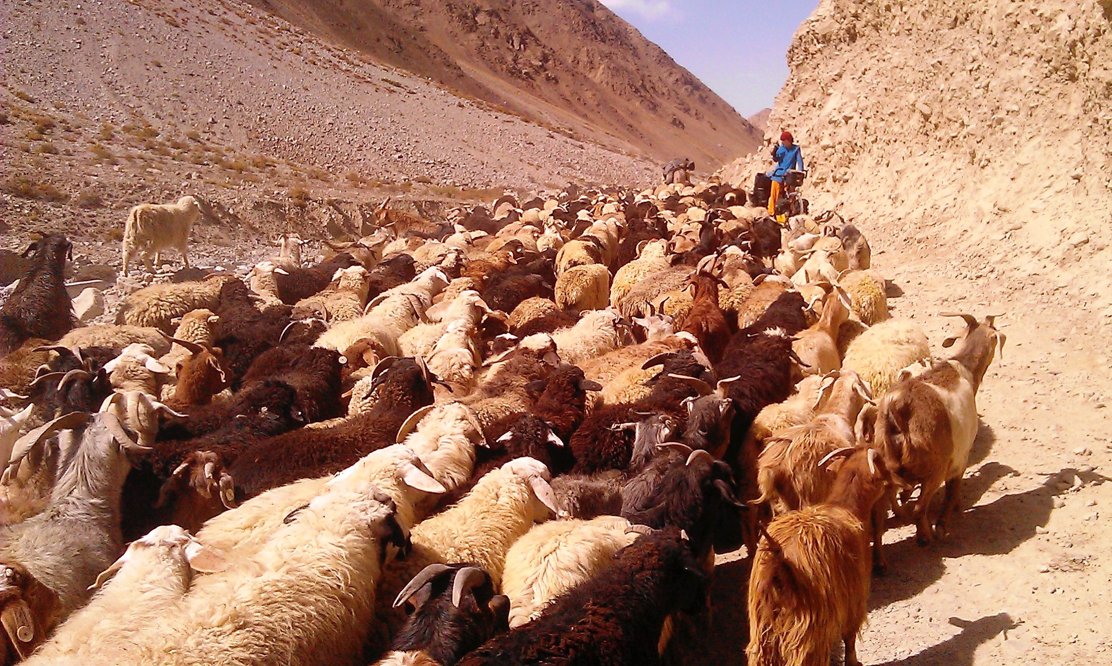 I had joked about how lucky I had been with punctures since leaving Istanbul – and foolishly I also joked that they were just saving themselves all up for the Pamirs. Little did I know that they were just saving themselves all up for 36hrs!! The road climbed gradually along the river, which was a thick grey colour from all the silt. We sweated in the hot sun, rested as the road was blocked by huge herds of sheep and goats, and lazed in shady spots for food and tea breaks. Then I had another puncture, rear wheel this time and the hole was on the inside of the inner tube next to the rim. Patched and re-assembled Carra made 100m before the hissing sounded again. This continued throughout the course of the day. Sometimes it would give way just as we put the wheel back on. We couldn’t find the offender on the rim, this was not the place or weather for repeat phantom punctures and I got increasingly frustrated and worried that I would have to head back to Dushanbe to solve the problem. Finally, after an exhausting 6 hours of puncture patching and process of elimination, we swapped the front and back tyres, lined the rims with gaffer tape and Carra admitted defeat and kept rolling. We managed less than 20km and it was a pretty demoralizing day. Lucky then that in the evening we found a perfect camping spot by a fresh water tributary to the river, where we could have a ‘nature’s best’ wash and crack open our supply of vodka for a bakal (the nick-name we gave to a ‘little cup of vodka’, loosely based on the local lingo!).
