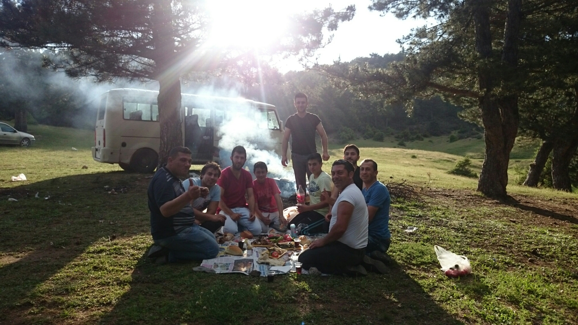 As the knee felt sore and stiff bit relatively alright I loaded Raven back up and headed back to the scene of the accident to accept my invitation to the Motocross event taking place just outside town. If tea with the mayor was surreal yesterday – it was even more so today with the noise of bike engines, the heady smell of petrol in the air and me being introduced to everyone and anyone connected with the event. I stuck around until the afternoon for the first race and then gingerly (and by now sun-burnt again) got back on Raven and wobbled out of town. I had almost made it the 35km to the next down when I was climbing up a wooded cut through on the road and someone started running down the hill waving at me. It was one of the (many) people I had been introduced to that afternoon, begging me to come and join a group of guys for a mangal (the Turkish obsession with BBQ). Time was running out for light and I tried, to no avail, to make my excuses and carry on, but 30 minutes later I was practically being force fed grilled chicken, green peppers, aubergine, watermelon and cola. Delicious as it was – I knew I had not finished the climb up the hill and was dreading a roadside vomit when I had to get back on the bike.
