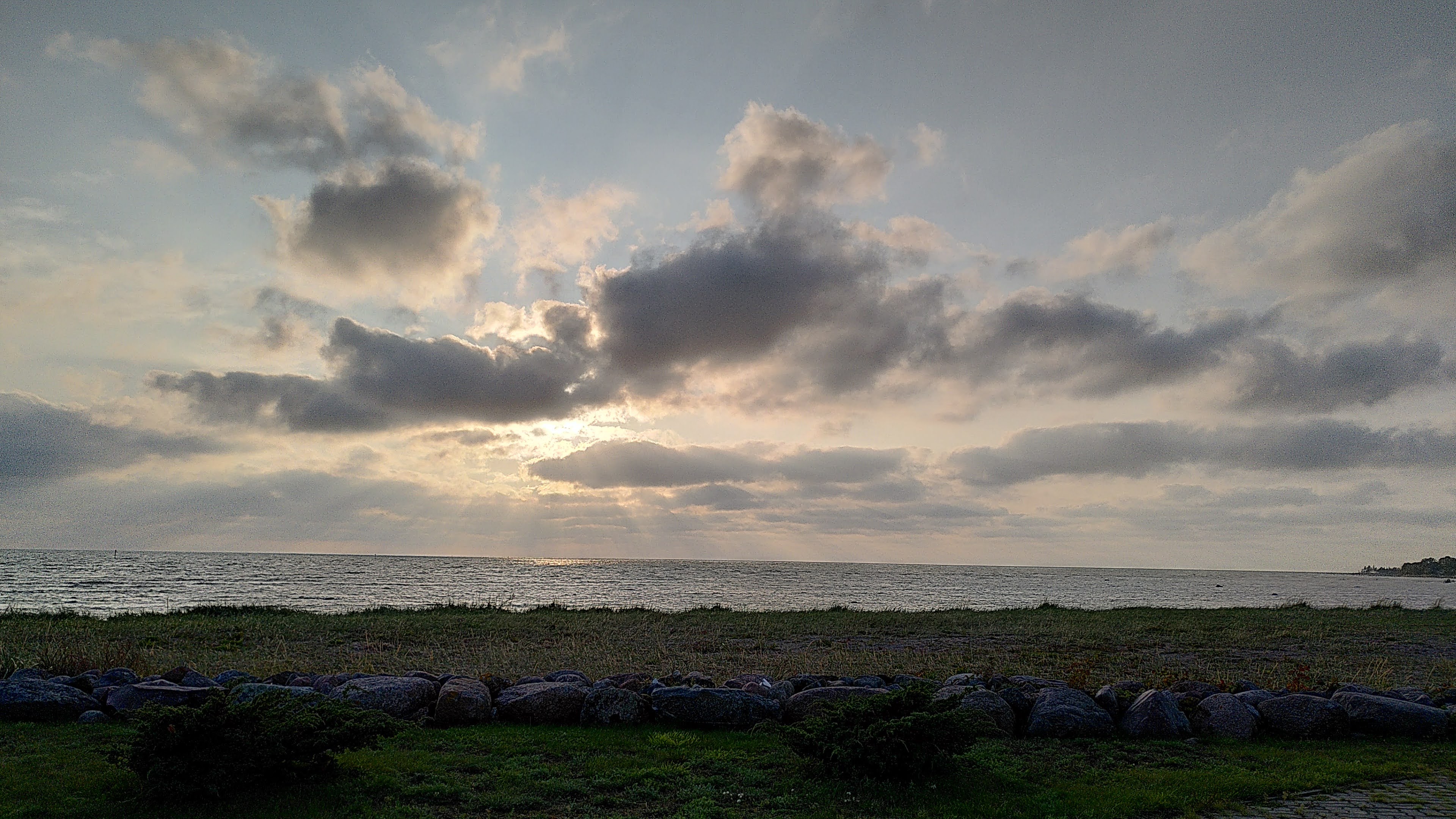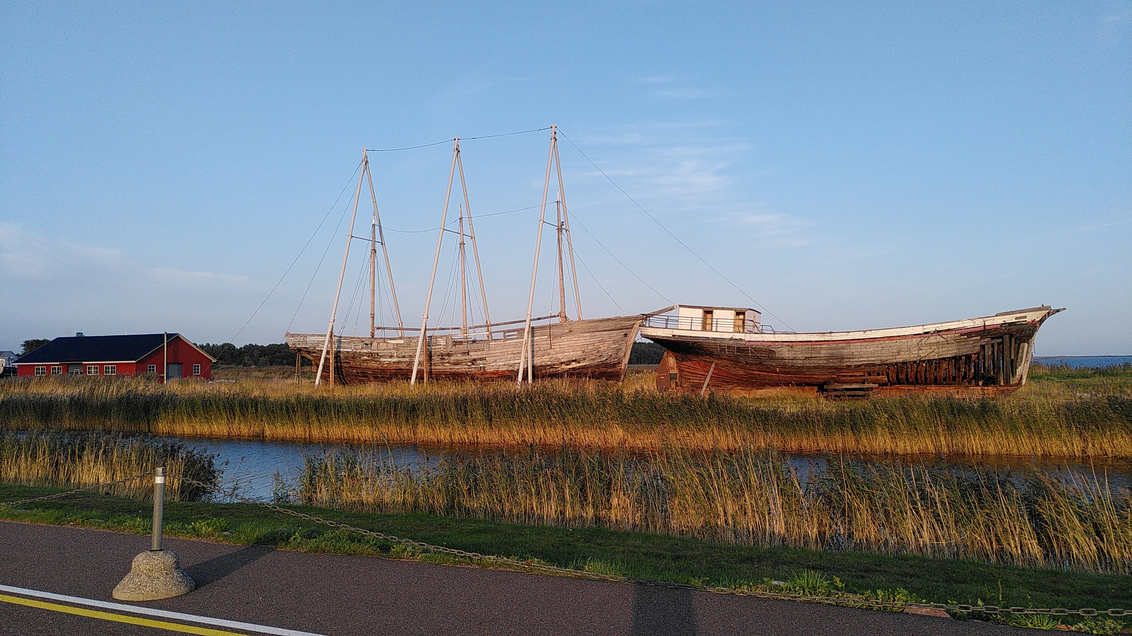 Docking in Heltermaa on the eastern side of the island there was a brief flurry of traffic as cars and trucks rolled off the ferry and disappeared down the road. A few on-coming vehicles hurried to catch the return sailing and then the peace and quiet set in. I pedalled for a couple of hours along empty roads through thick forest and dappled sunlight, past wooden cabins and old stone buildings with the shadows growing longer as the evening arrived.